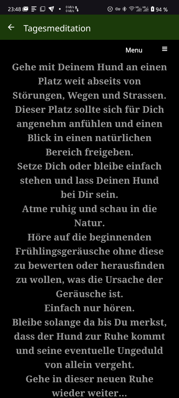 Regelmäßig wechselnde Meditationsübungen für ein entspanntes Mensch-Hund-Team.