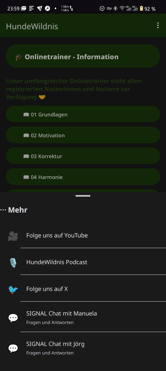 - Signal-Kontakt: Direkter Draht zu den Trainern Manuela und Jörg.