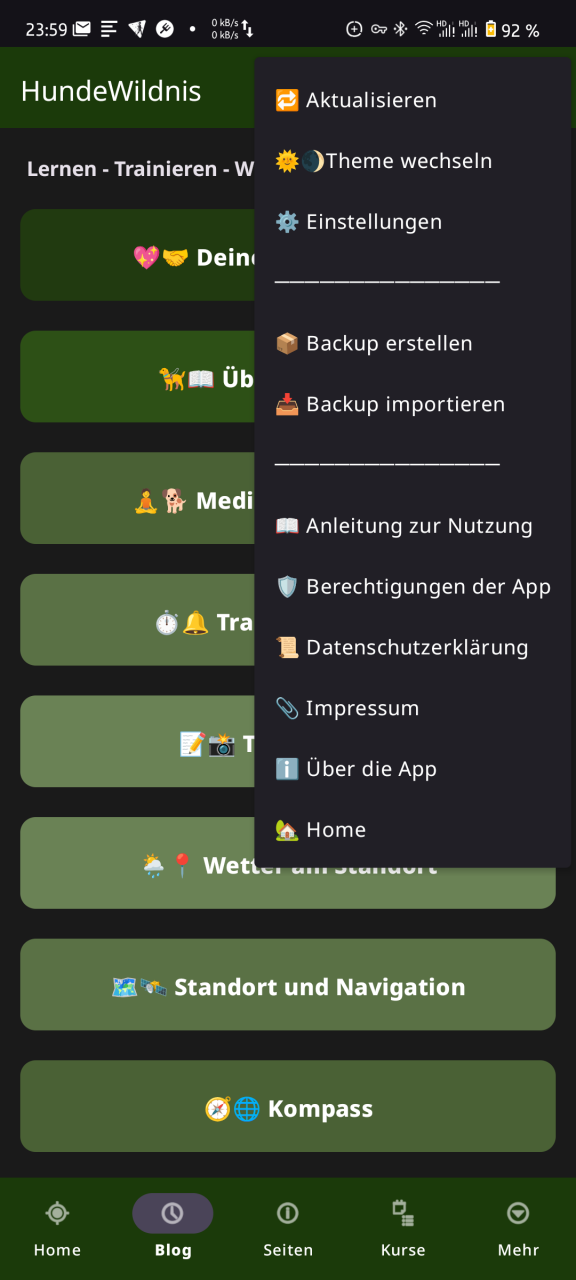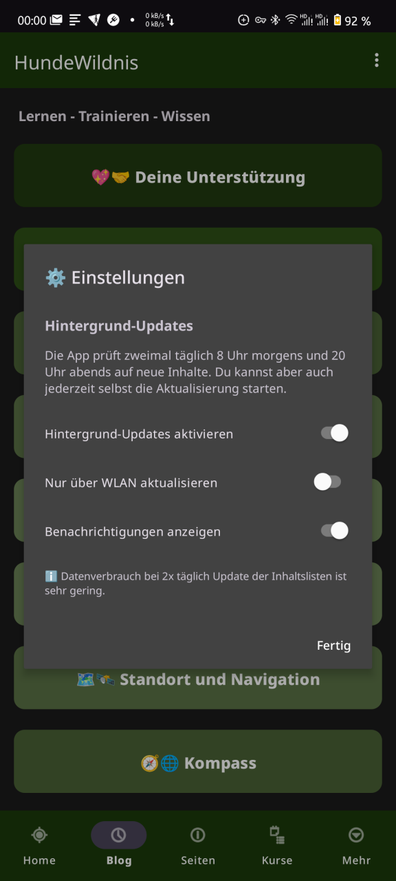 Mit Version 9 der HundeWildnis App haben wir nicht nur einzelne Funktionen ergänzt, sondern die gesamte Anwendung grundlegend überarbeitet. Entstanden ist ein Werkzeug, das dem Anspruch gerecht wird ein gutes Werkzeug und ein hilfreicher Begleiter im Alltag, beim täglichen Training und bei allen Unternehmungen mit dem Hund zu sein.