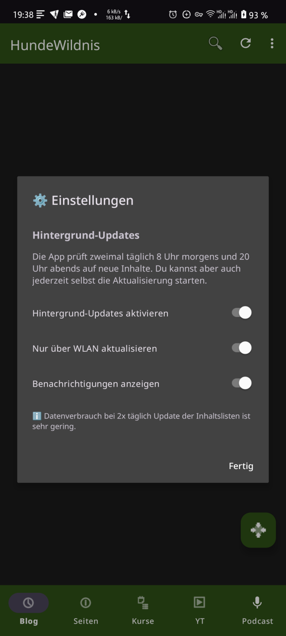 Lade die HundeWildnisApp herunter und erlebe die gemeinsame Zeit mit deinem Hund wie nie zuvor. Jetzt mit verbesserter Navigation und präzisen Outdoor-Tools!